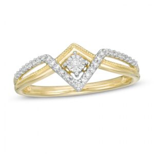 1/20 CT. T.W. Diamond Tiara Star Signet Ring in 10K Gold:1/20 CT. T.W. Diamond Tiara Star Signet Ring in 10K Gold