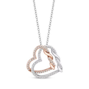 A stunning diamond dances with every move at the center of this gorgeous women’s heart necklace from the collection. Additional round diamonds frame the heart-shaped pendant, giving the necklace a total diamond weight of 1/3 carat. The 10K white gold pendant sways from a 19-inch curb chain and secures with a lobster clasp.